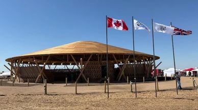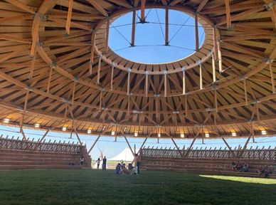 The structure was disassembled and reconstructed in 2023. O'Chiese 203 Indian reserve is approximately 52 km northwest of Rocky Mountain House, Alberta. Capacity is 2,000 people ©LOLA Architecture